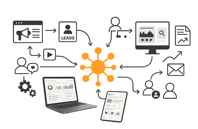 Dal supporto di un team specializzato a un processo strutturato, fino all’integrazione con CRM, SEO ed email marketing: ecco come trasformiamo i social in un motore di crescita per il tuo eCommerce.